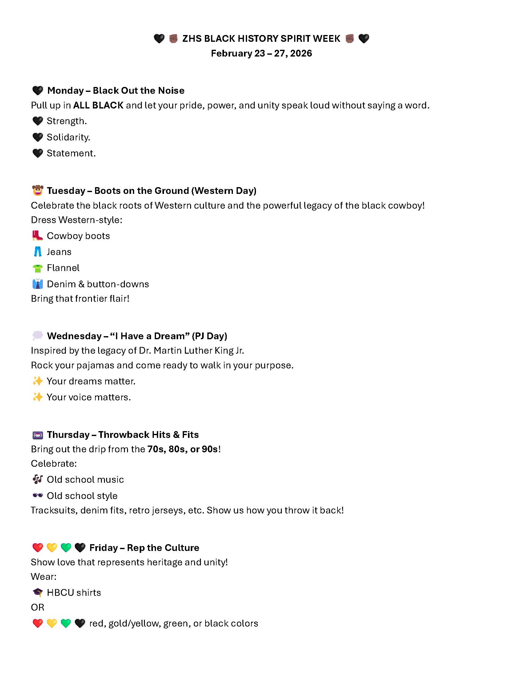 Black History Spirit Week